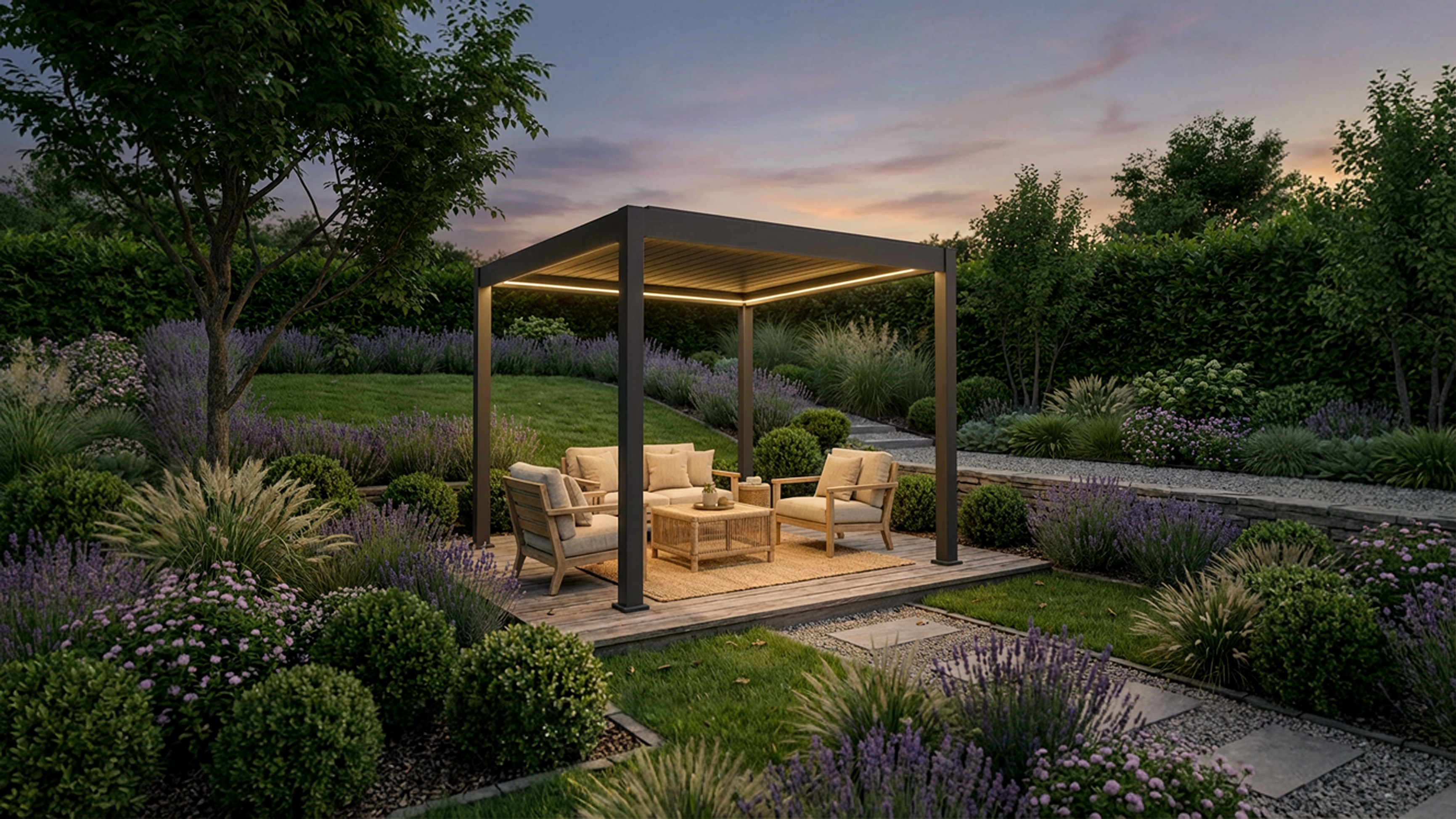 Een pergola met lamellen of een paviljoen biedt meer dan alleen beschutting: het herontwerpt je buitenruimte, creëert extra leefruimte en regelt licht en schaduw. Je terras wordt een plek om zelfs in oktober te genieten, en je tuin is niet langer seizoensgebonden.