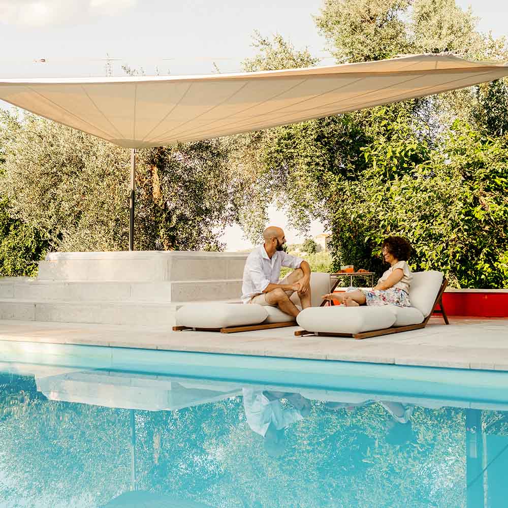 Het is de Italiaanse kleermakerstraditie toegepast op outdoor, voor meubelen die hun mooie uitstraling behouden, seizoen na seizoen.