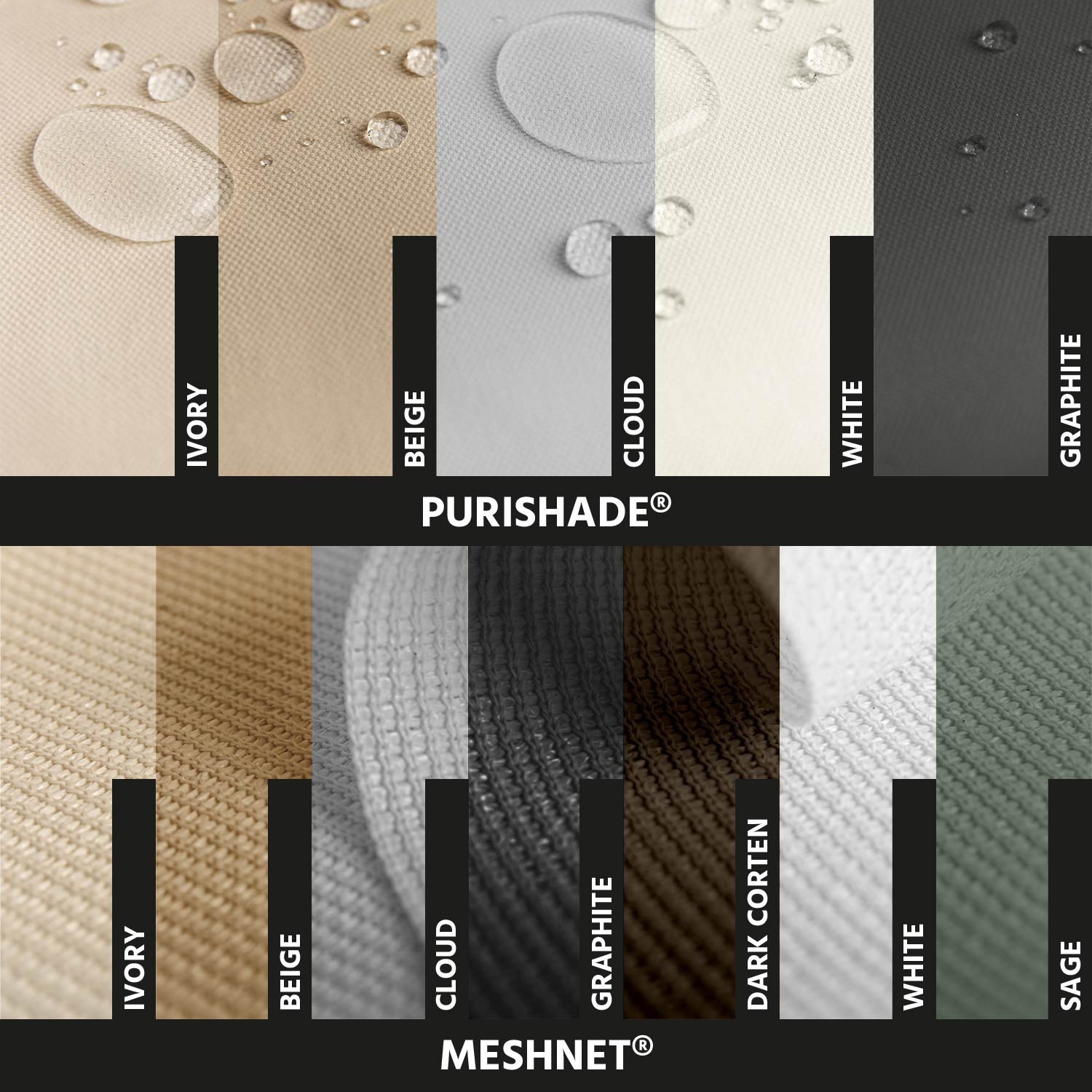 | Polyester | Purishade® | HDPE Virgin | Meshnet® | Braidd5® | Clear® | |