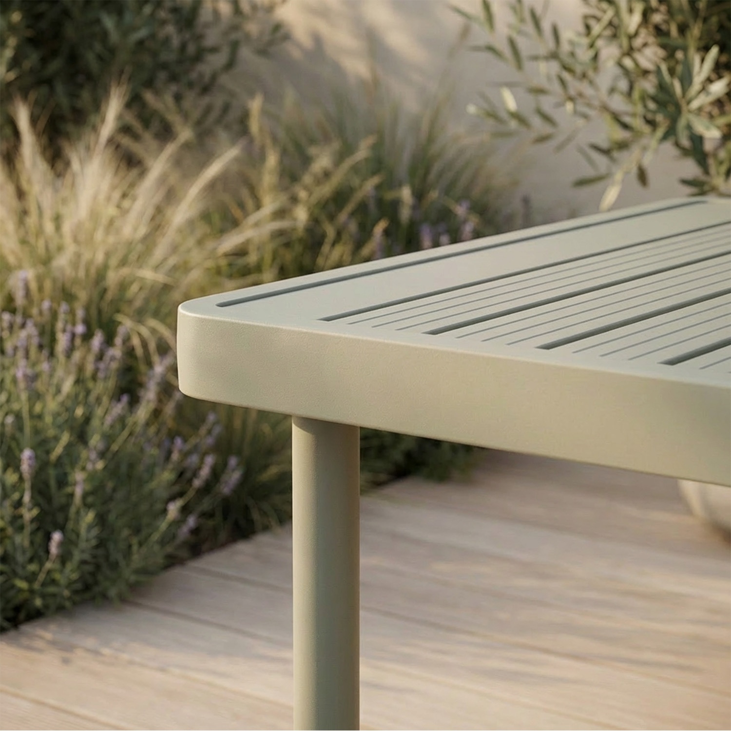 Daaronder zorgt een aluminium structuur met slanke en luchtige profielen voor stabiliteit zonder zwaar te ogen. Melina lijkt geen outdoor set die op een terras is geplaatst: het lijkt een woonkamer die ervoor heeft gekozen buiten te leven.