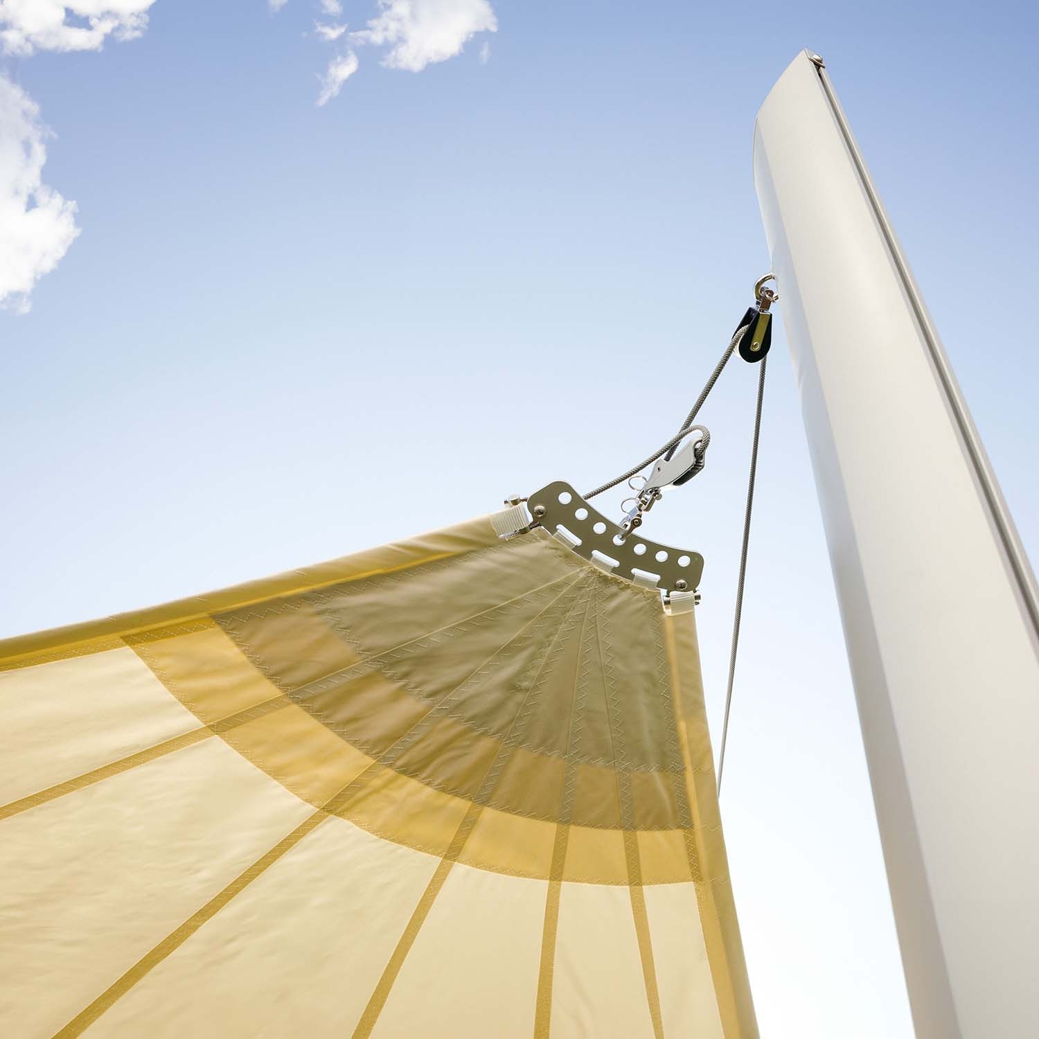 Dit automatisch oprolbaar schaduwdoek vereist palen die speciaal door Maanta zijn ontworpen en voorzien zijn van platen voor het motorische bevestigingssysteem. Als je al andere palen hebt, zijn deze helaas niet compatibel met Zefira.