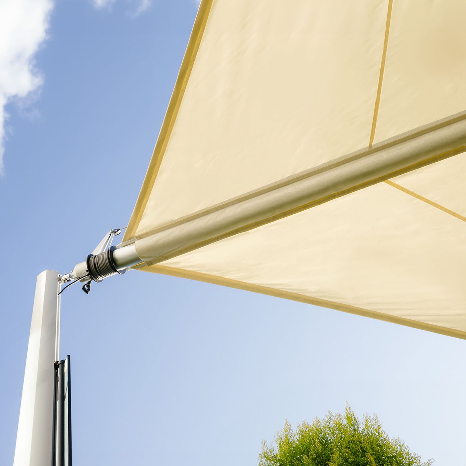 Gaat jarenlang mee, niet slechts één seizoen. Dankzij het Constant Tension Release-systeem blijft het doek strak bij openen, sluiten en gebruik, zonder slijtage en met een hogere windbestendigheid.