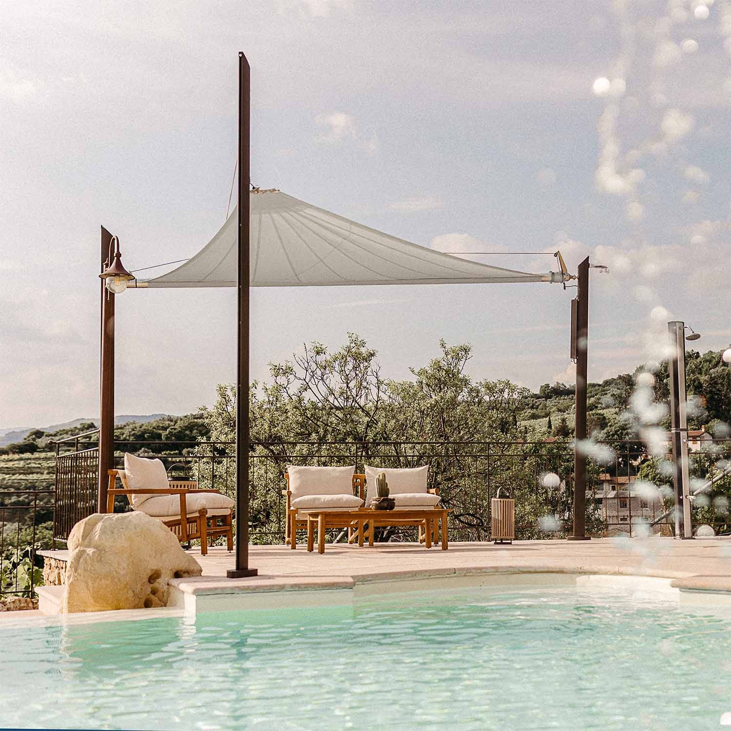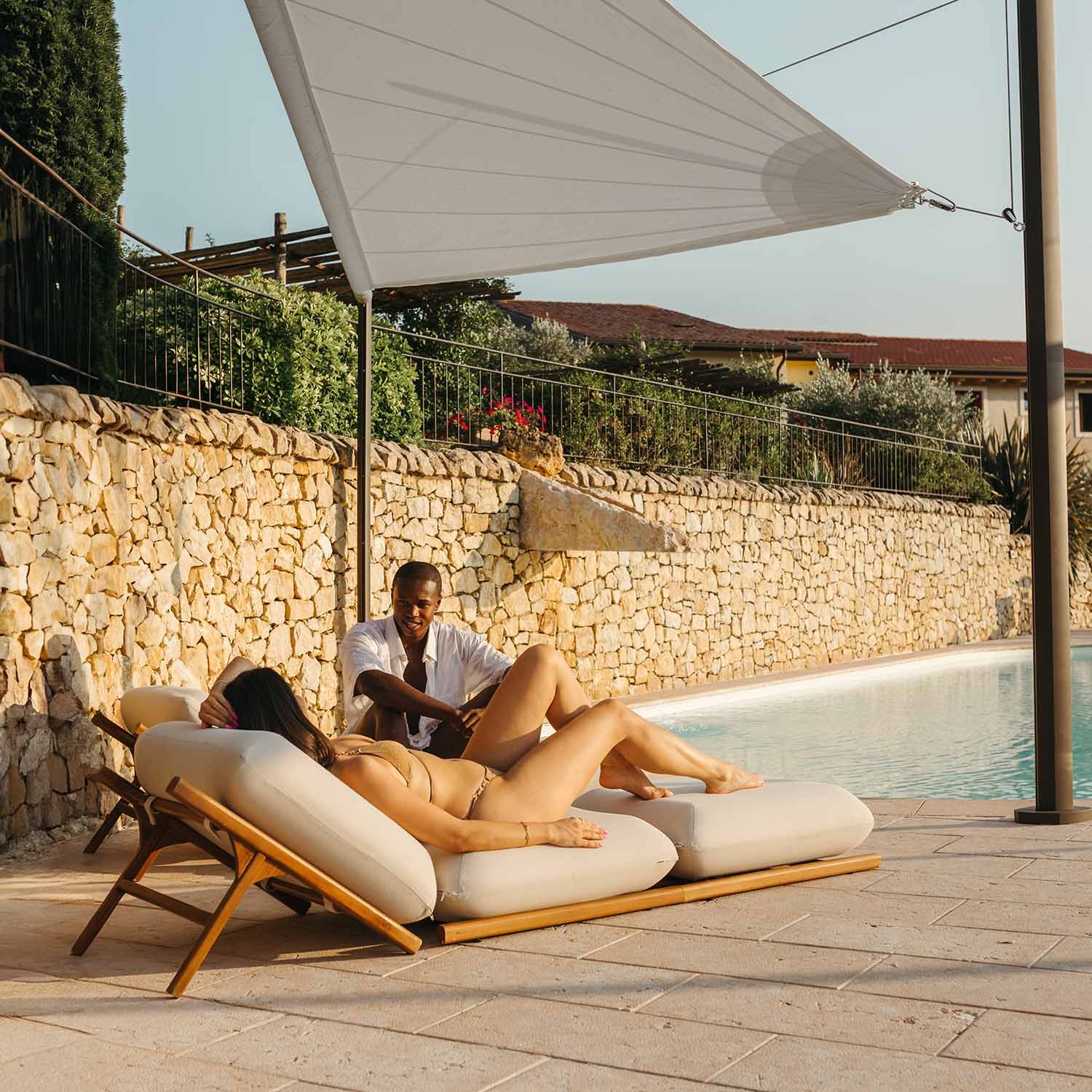 Maanta, een Italiaans merk dat gespecialiseerd is in schaduwoplossingen voor buiten, heeft Zefira ontworpen voor maximale autonomie via zonne-energie. Netstroom is alleen nodig als laatste redmiddel bij een volledig lege batterij.