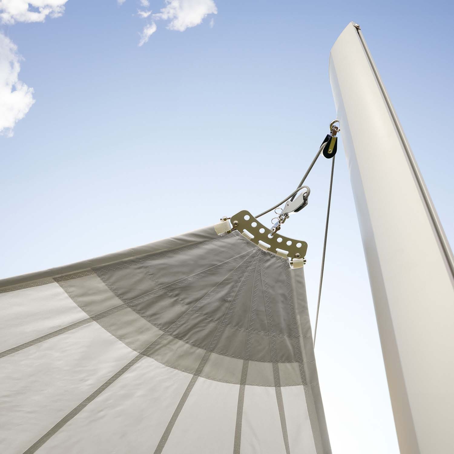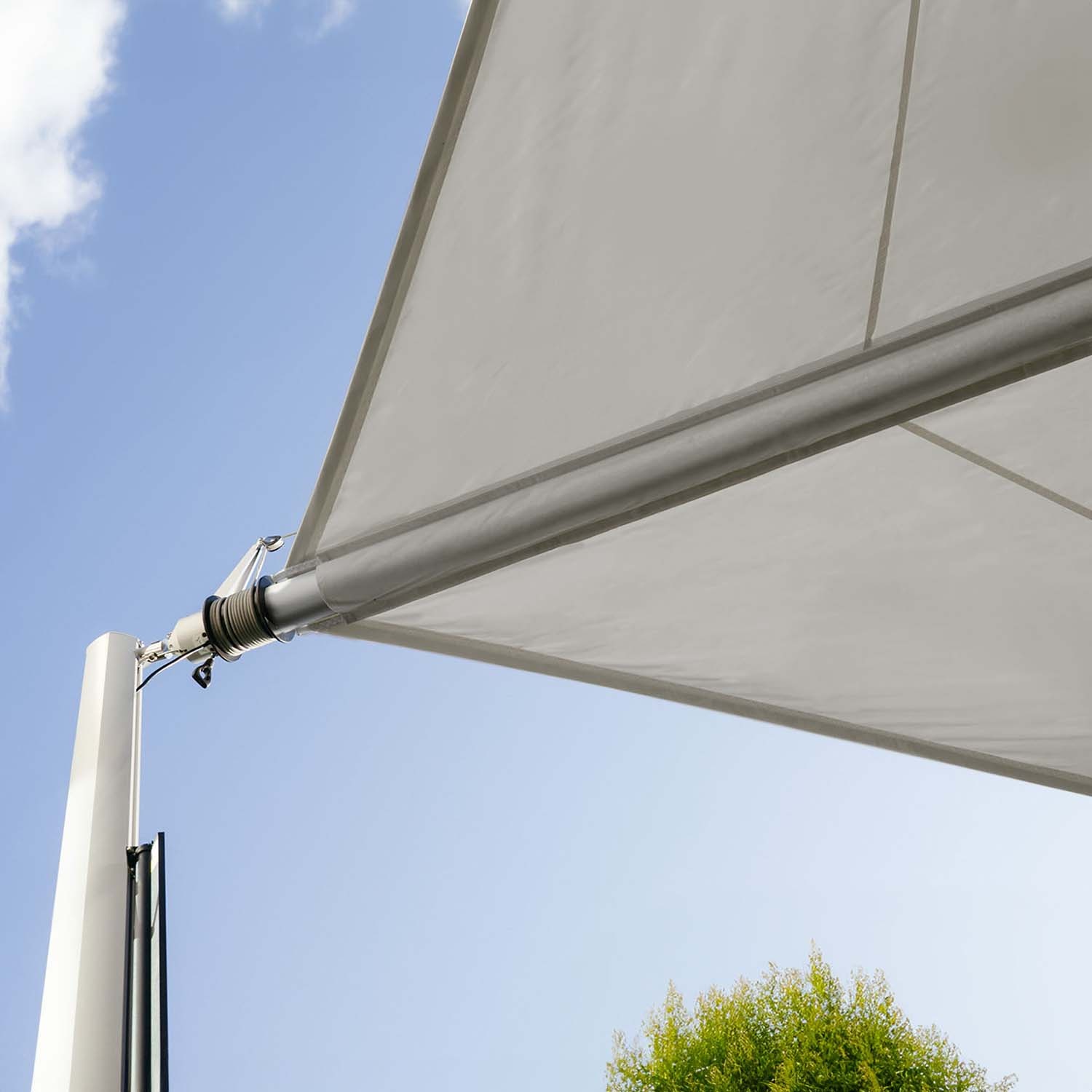 Inbegrepen componenten spansysteem Veergroep, lijnoproller, katrollen op de hoeken van het schaduwdoek, spanlijn, uitkragende beugel