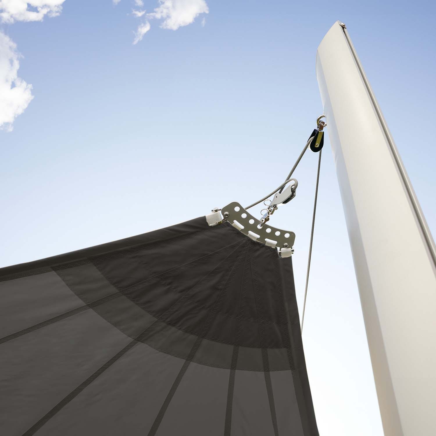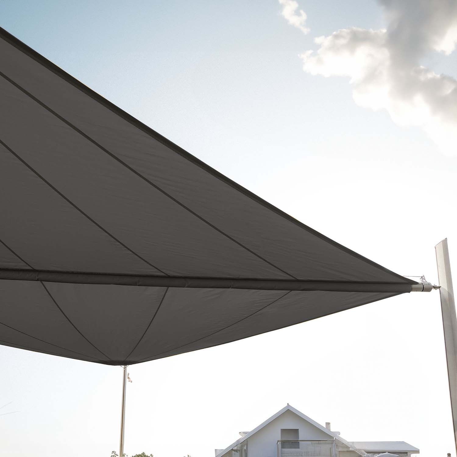 Inbegrepen componenten spansysteem Veergroep, lijnoproller, katrollen op de hoeken van het schaduwdoek, spanlijn, uitkragende beugel