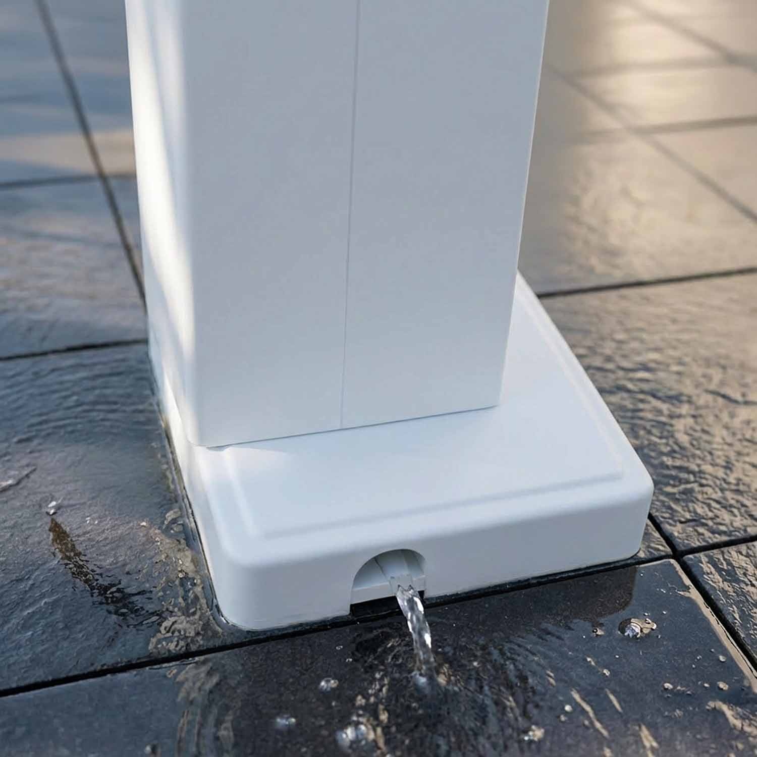 Exclusief profiel met dubbel kanaal in de paal. Onzichtbare kabels, transformator altijd droog. Geen externe kabelgoten.