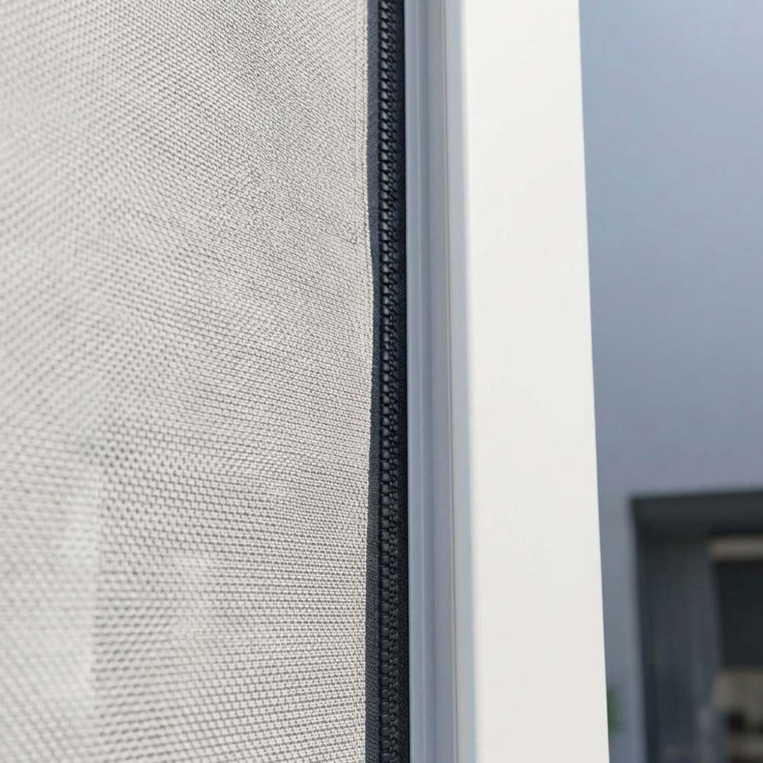 Een traditioneel rolgordijn heeft vrije zijkanten: het bolt op en klappert in de wind, laat openingen voor insecten en is minder effectief als thermische barrière. De ZIP Screen heeft een rits die in gesloten zijgeleiders loopt: het doek is rondom opgesloten, beweegt niet in de wind en laat geen openingen.