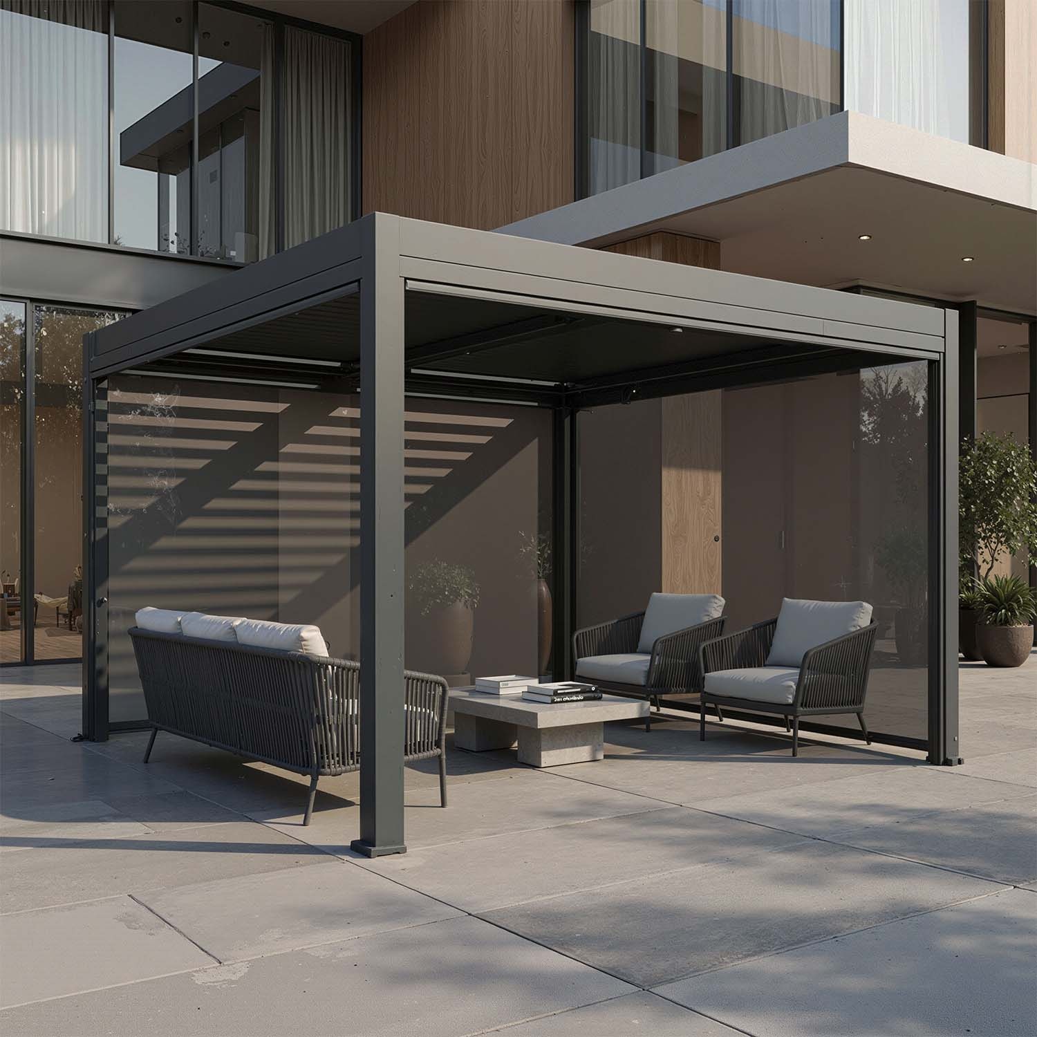 - Thermische barrière die warmteverlies vermindert: de pergola behoudt een stabielere temperatuur.