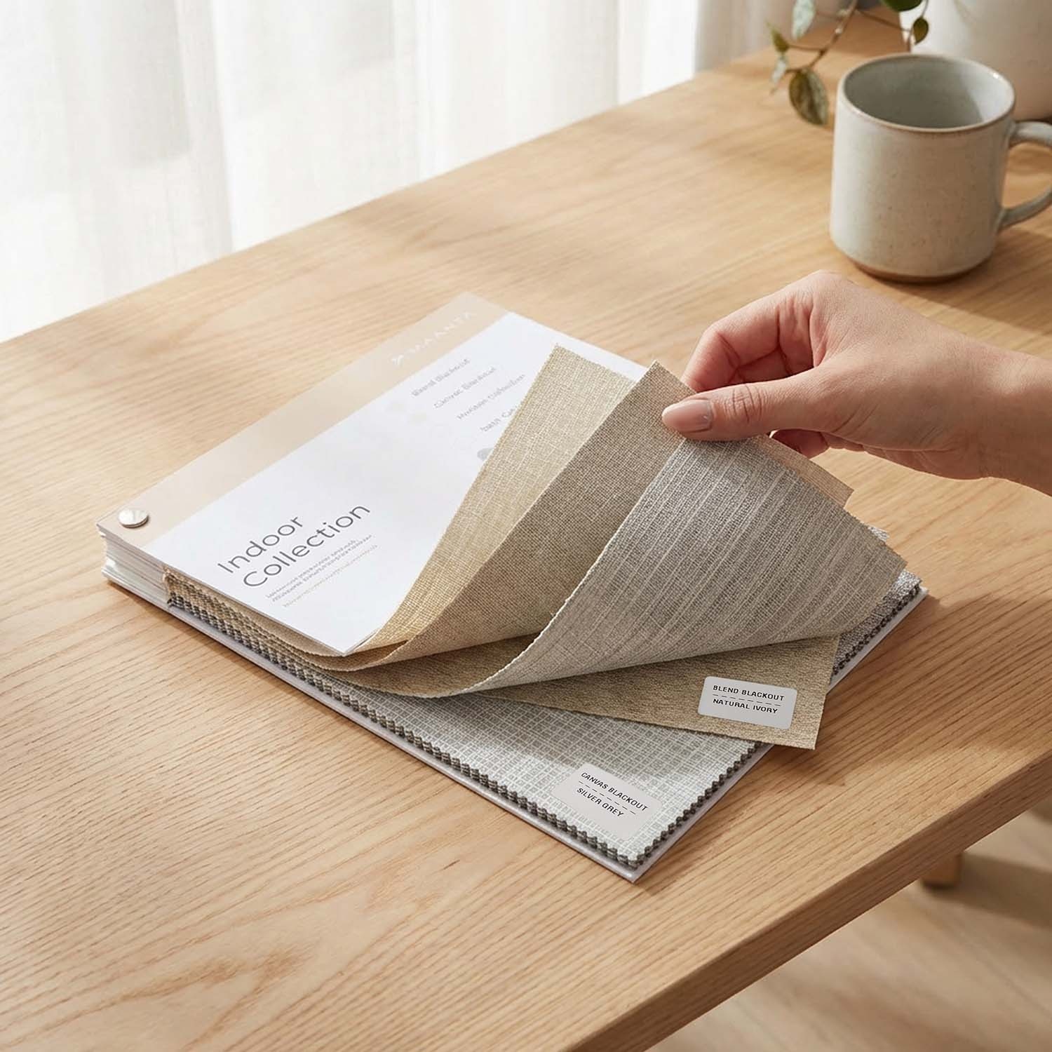 Ja, je kunt gratis stalen aanvragen om de afwerkingen van je rolgordijnen voor binnen te beoordelen en de stof te kiezen die het beste bij jouw ruimte past. De stalen bevatten ook de afwerkingen van de decoratieve platen.