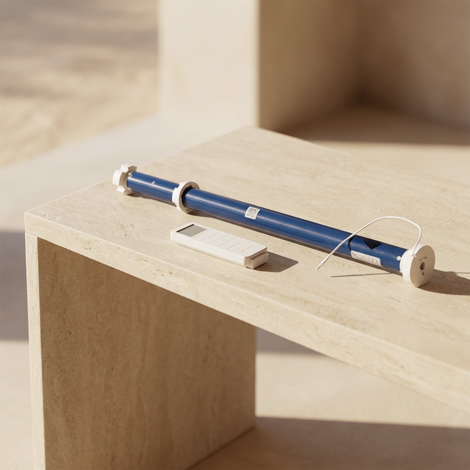 Oplaadbare buismotor met geïntegreerde lithiumbatterij. Wordt direct in de oprolrol van het rolgordijn Recta of Kyma geplaatst, naar keuze links of rechts.
