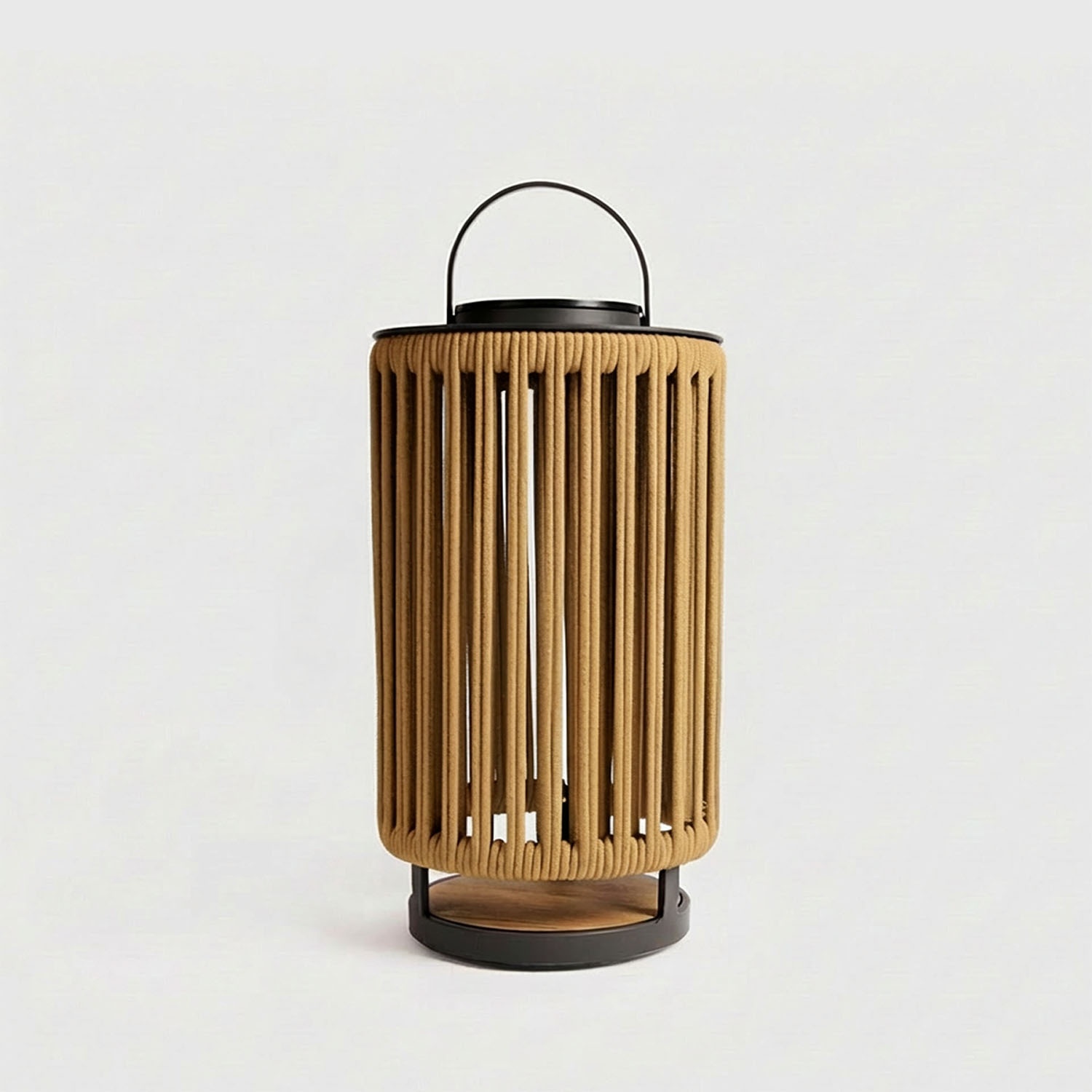 Wanneer je haar aanzet, filtert het touw het licht en projecteert het stralende schaduwen op de vloer, de muur en het tafelkleed: ze verlicht niet alleen, ze verrijkt ook je buitenruimte.